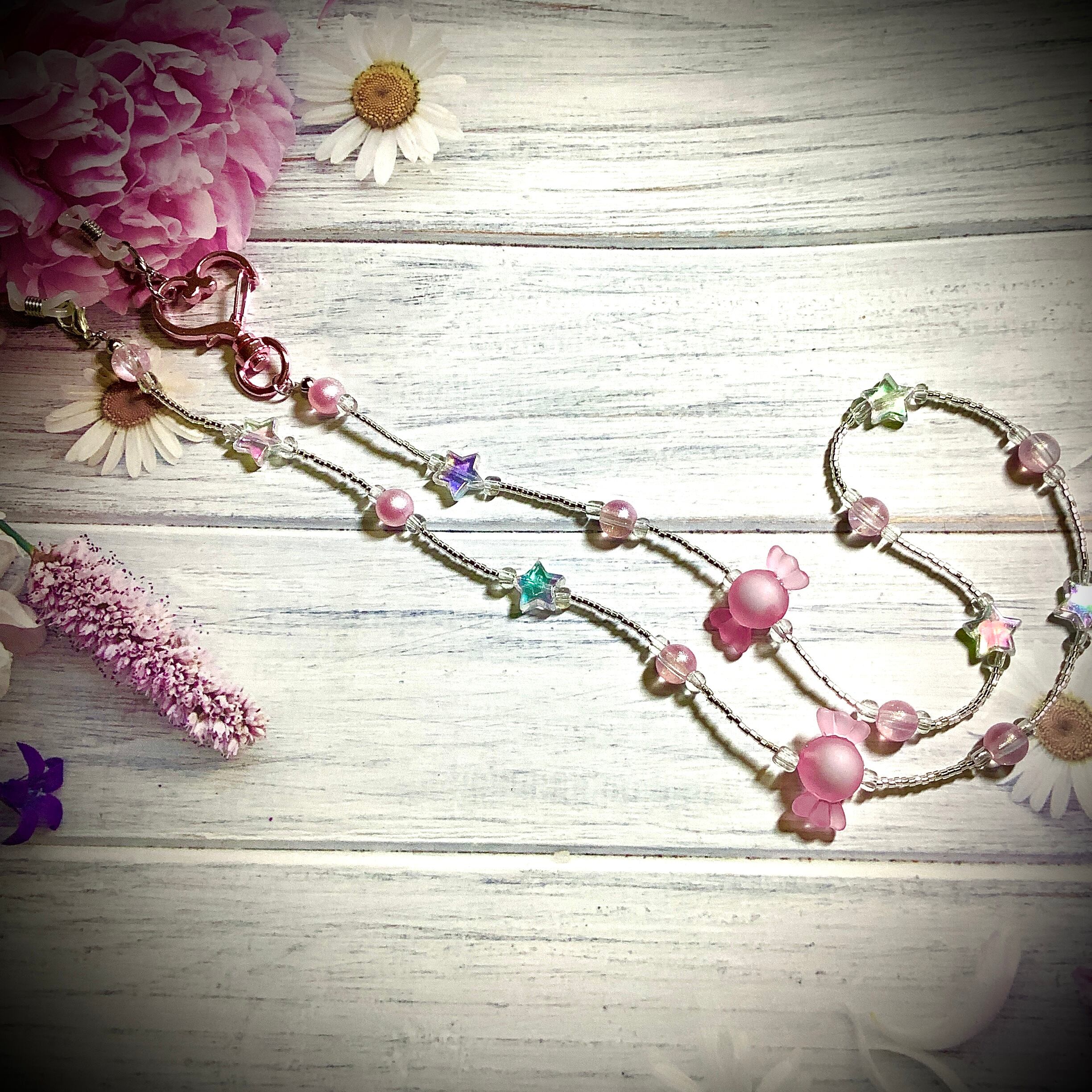 デザインも優しいピンクのキャンディーをアシメントリーに連ねて、おしゃれな感じです♫