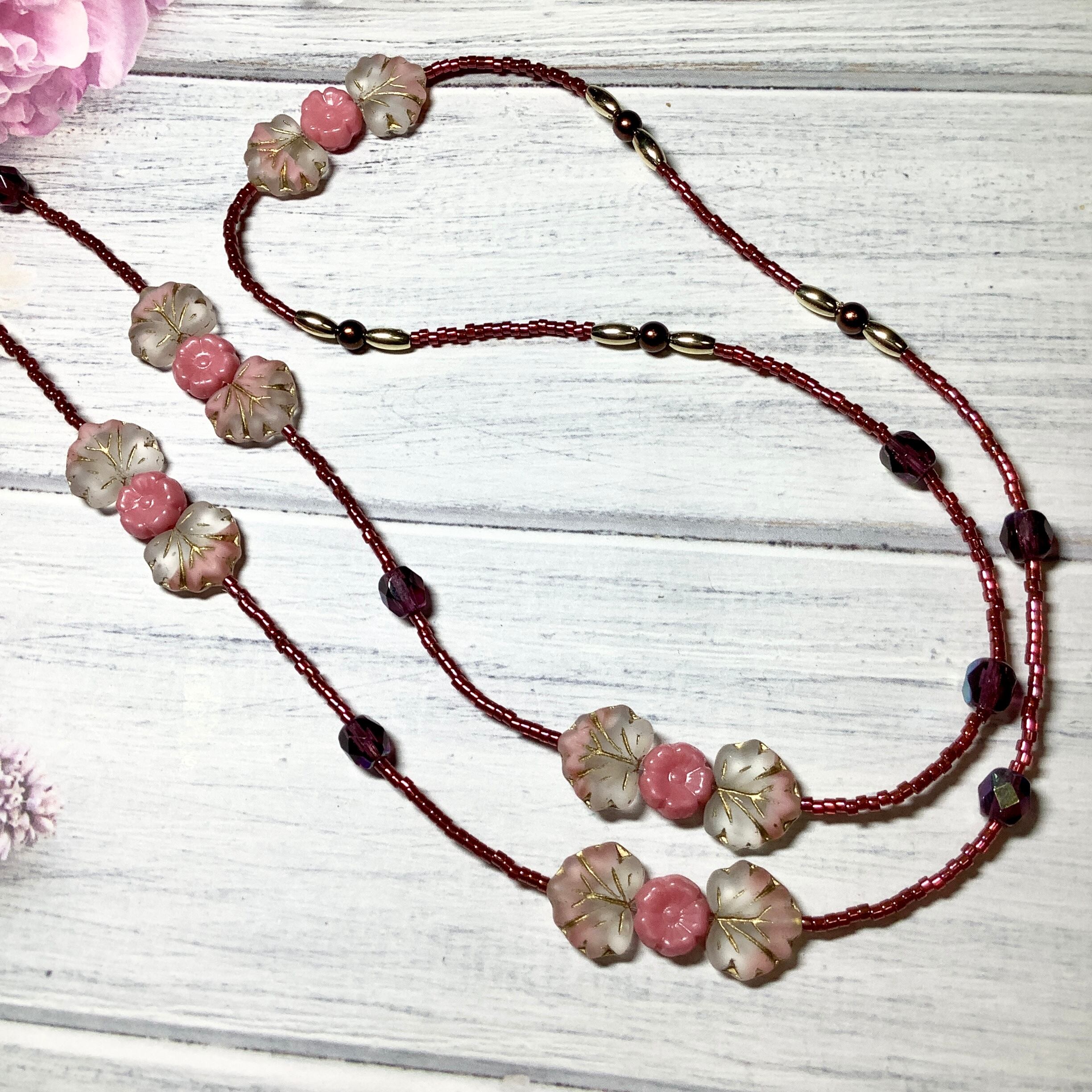 チェコFPとチェコリーフなどなどで、メガネチェーン3wayを作りました。
